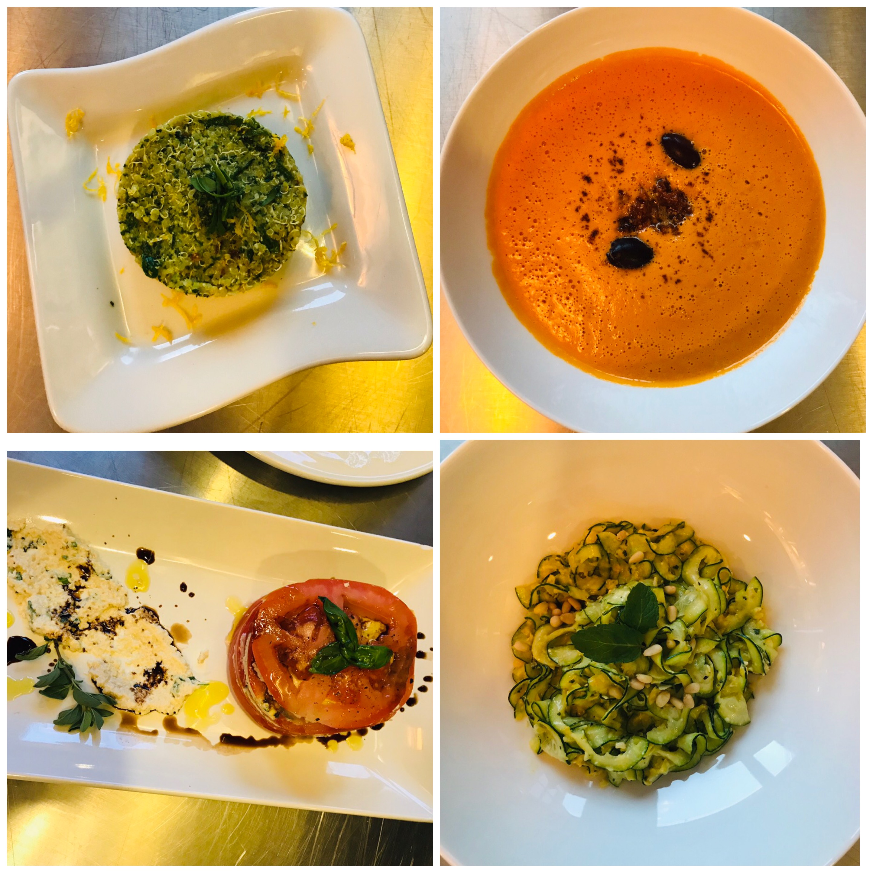 This week in class we made a plethora of colorful, exciting recipes that actually tasted delicious and offer so many health benefits! What more could you ask for, right?! There were a lot of ingredients used that were new to me and many different techniques I had never even heard of! Overall, this was probably my favorite week so far because all of the recipes were so refreshing and delicious! The recipes made this week included a Moroccan Carrot Soup, Balsamic Beets with a Cashew Whipped Sauce, Tomato and Herbed Pine Nut Towers, Zucchini Noodles and Corn Mint Pesto, Heirloom Tomato Gazpacho with Basil Sorbet, and Quinoa and Secret Pesto. I loved every single one of these and can’t wait to try making them at home!